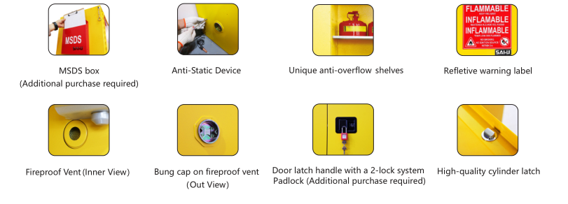 ● Огнеупорное вентиляционное отверстие, эфективно разбавляет концентрацию летучих веществ внутри шкафов для предотвращения опасностей пожара.